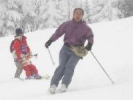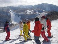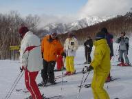 1日目は各グル-プはインストラクタ-に連れられて別行動。私達の上級班は高天ケ原から発舗ブナ平スキ-場、さらにジャイアントスキ-場に回り、滑りを楽しんだ。