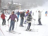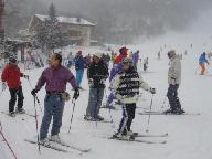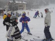 4名のインストラクタ-に、4班に分かれてお世話になった。それぞれスキ-の技術べつのグル-プ編成。