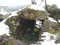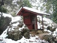 友人は本格的に三脚など持ち出して撮影準備を始めたので、先に伊也神社に登り、神社裏にそびえ立つ盤座(いわざ)を撮った。さらに雪の山道を登り「岩ほこら」まで行き、さらに登って「左衛門屋敷跡」「照福寺跡」を探したが、まだ先のようなので友人を待たしているので引き返した。
