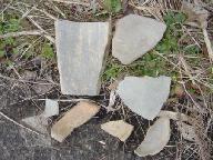 「札前古墳」「窯あと」は山の中でなく道際にあったが、此処と言ってもらわないとまず判らないと思う。出土した土器、瓦片を撮らして頂いた。