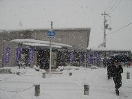 綾部を出た時は、日が差しており積雪の中の初梅が狙いであったが、「申酉古墳」「正光神社」「毎国庵」は降り出した雪の中での撮影になった。巨巌信仰とある大塚の「熊野神社」にまわり取材、「窯あと」は天候が悪い中で山に入るにはと見送った。