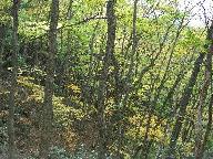 写真:頂上の石段には、見事な巨木の樹木がたくさん聳えているが、少し手前で台風23号により根から倒れている。舞鶴市街の展望できる所も土砂が流れ丸太橋が渡されるなど、倒木と土砂崩れが目立った。「引土」は赤い山土ですね。