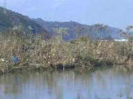 由良川のゴミのかかった木々の丁度真後ろに見える山の裾付近から手前に国道に出た付近が、例の一躍有名になったバスが水害にあったところです。