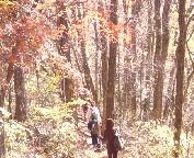 写真:紅葉の美しい道を登っていく。