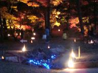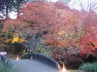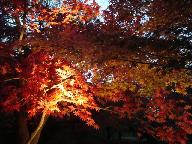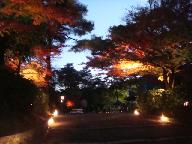 日も落ち暗くなってライトアップされた紅葉が一段と映える。幻想的な雰囲気が深まる。