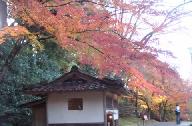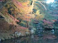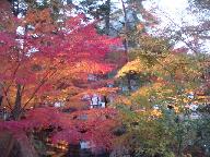 金龍海を一巡りしてきて、紅葉の向こうに弥勒殿の大屋根がみえる。
