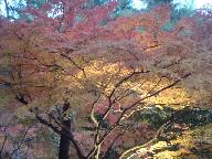 大本弥勒殿前の広場に登るところで、また知り合いのアマチュア・カメラマンに出会った。紅葉のライトアップが佳境にのった時間帯で、これから撮影に行くとのこと。