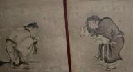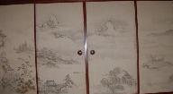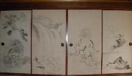 画題は墨画獅子図十二面、豊干寒山拾得図四面、四季花鳥図六面、竹林七賢図四面、淡彩四季山水図八面の計三十四面(二十四本)です。