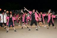 よさこい踊りが若者集団で元気いっぱいに演じられる。揃いのピンクの法被には「たかつ」と染め抜かれている。子どもも混じっていて微笑ましい