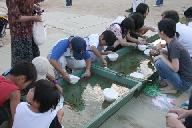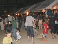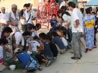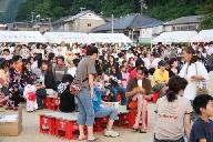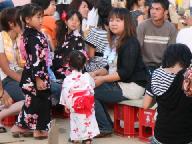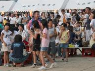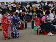納涼大会の広い会場も夕刻が近づくと、どんどん人が増えてきた。浴衣姿で参加の子どもたちが楽しそう
