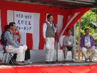 向日市・綾部市交流ウォ-キングで挨拶される綾部市長代理(収入役)