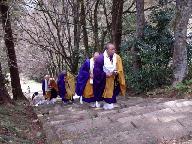 ①露払い:小学校三、四年くらいの男子が二人、赤・青・白の色紙を巻いた長さ一・五メートルほどの棒(サンヤレという)を振って打ち合う。