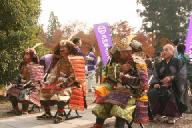 武者行列は安国寺陸橋下の尊氏銅像そばに設けられた特設ステ-ジで式典があり、お茶席、菊花展、屋台店、催しなどで大賑わいでした。