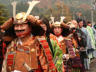 ホ-ムペ-ジ「綾部の文化財」の巻頭写真撮影が今日の目的、武者行列を後ろから撮ったのでは写真にならない。