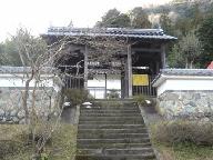 上林街道の旭町交差点手前の左手に建つ、この山門に仁王像は不在である。真ん中に吊られた梵鐘だけが寂しげであった。