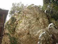 社の後ろには、盤座(いわざ)と呼ばれる大岩が立っている。