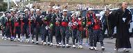 同時に進行の「太刀振り」 「露払い」「妻かくし」「小太刀「野太刀」「小長刀」「大長刀」まで六番あり、舞堂で太鼓踊りと平行して次々と人が代わり演じられていきます。動きが早いので写真のタイミングが合いません。