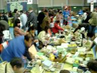 油絵や花瓶、人形、中には天体望遠鏡まであった。品物に付けられた価格は凄く安い。もし気に入ったものがあれば凄いお買い得品になる。また2時半になると半額セ-ルが始まる。これは拡げた品物をまた片付けるのが大変だから、出来るだけ売り尽くす方針である。しかし市民から奉仕された品物は中級品止まりで、センスの良い物も多いが、元値が高級品の部類のものは、さすがに見あたらないようだ。また量産時代の商品で骨董品(古美術)の部類のものはない