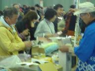 向こう側のテントで「ぜんざい」が、入り口横にもテントがあり、「フランクフルト」を販売している。「ぶた汁」は無料で配られていた、美味しかった。