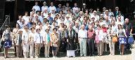 下見に行った時の予定では、参道両脇の灯篭の前に90名が並んで撮影するつもりであった。しかし中心に居られる幹栄盛師が本堂(国宝)の登り段でと、一方ならぬご好意を賜ったので予定変更をして、この写真となった
