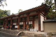 東院伽藍は養老年間に吉備内親王が元明天皇の冥福を祈り、発願建立されたものです。奈良時代の位置は東側(現在の観音池)にあり、南を向いて建てられていましたが、天禄4年(973)の火災で焼失、弘安8年(1285)現在の地に建てかえられた国宝の建物です。
