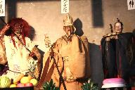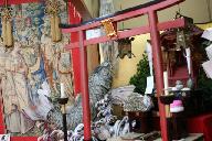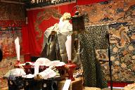 人形着用の古衣装には、延宝三年(1675)在銘の紺地菊唐草文金襴小袖(こんじきくからくさもんきんらんこそで)及び正徳元年(1711)在銘の萌葱絽地牡丹文(もえぎらじぼたんもん)色入金襴大口袴(きんらんおおぐちはかま)がある。また右前掛の波濤飛龍図(はとうひりゅうず)は中国綴織。これは明朝最後の君主尚寧王(しょうねいおう)が師にあたる京の袋中上人に献上した十六世紀の織物で、現在京都国立博物館に保管されている明時代の貴重なものである。