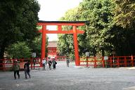 ここは下鴨神社と両社で「賀茂社」と総称され、以前ご神体は後方の神山(こうやま)であったが、天武天皇の御代に現在の地に社殿が造営された。正式には