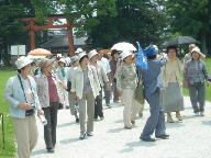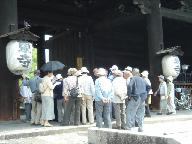 いつもなら続いて1号車の記念撮影となるのだが、待っていても楼門前にやってこない。しびれを切らして迎えに行く。上賀茂神社の本殿・権殿参観は少人数づつしか参拝できないとはあらかじめ聞いてはいる。