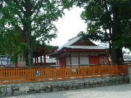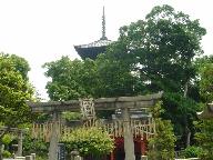 796年創建、平安京と東寺を守護する為まつられたが、明治元年(1868)焼失、平成3年に123年ぶりに再建。本尊は檜材の一木造りで一本の巨木から弘法大師作と伝えられる。僧形八幡神坐像と女神坐像二躯の三躯が安置されている。
