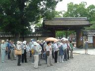 東寺(金光明四天王教王護国寺)に予定より早く到着、案内の京都SKY観光ガイド協会のお二人が待っておられた。入門ゲ-トから記念写真の撮影場所をチェック。樹木があり五重塔の上層部しか見えない。予定の撮影場所は完全な逆光が予想され出来れば回避したい。