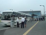 写真:バス乗車の最後の確認をする研修旅行世話役たち