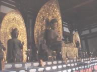 境内に入ると巨大な大仏殿が目に付く。此処から更に大仏殿の前に行くと、巨大な金銅の八角灯籠がある、高さ4.6メートルもあり、この灯籠は東大寺創建当時のものとされ、その後、多少手を加えているが天平時代の金工技術と工芸意匠の素晴らしさを現代に伝えている。非常に大きな火袋が特徴で東西南北の四面には両開きの扉に雲中を走る唐獅子と他の四面には優美な音声(おんじょう)菩薩(ぼさつ)の浮彫が見られる。