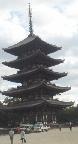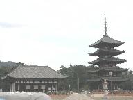 高さ51メートル。古塔としては、京都の東寺の五重塔55メートルに次ぐ高さで、天平二年(730)藤原不比等の娘・光明皇后の発願で建立。現存の建物は、室町時代の応永十三年(1426)に建てられた六度目の室町時代の建物ながら、全体に創建当時を伝える純和様の名建築である
