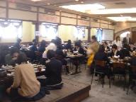 200名の団体収容可能の大広間:食事中にお土産の宣伝説明があり、お土産サ-ビス券をいただいた。