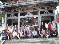 日本最大秘仏、国宝・金剛蔵王権現像の特別ご開帳を拝観しながら、金峯山寺宗務総長:田中利典師の法話を拝聴し、さらに蔵王権現本地堂に移って、蔵王権現の本地仏:釈迦・千手観音・弥勒の三尊を前に同師のご法話を拝聴、続いて蔵王権現堂をバックに記念写真を田中利典師にも入っていただいて撮影しました。