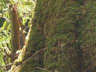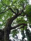 どんどん高度を稼ぐ登りで息が切れてくる。みずめの若木があり樹皮を少し取ってサロメチ-ルの匂いがする。いよいよ登りも急になり稜線尾根に近い。谷の行き止まりに「大みずめ」が青々とした葉を茂らせて聳えていた。京都名木百選で日本一のみづめが枯れかかっているので、そうなると日本一のみずめだと云うことである。地面から1米ほどに太い切断された木輪があり、その下にも切断面がある。谷の下方向の幹だけが生き残っている様だ。青々と茂る「大みずめ」