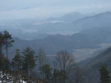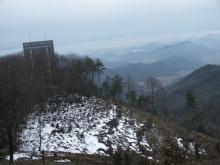 | ふかふか落葉の自然道を行く | 遙かに綾部市街・寺山を望む | 反射板下に残る雪 | 展望を楽しむ | 登頂記念撮影 |