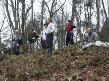 | かなり急な登り | 一服休憩 | 東照寺跡の石段? | 石垣の跡あり東照寺跡と断定 | 記念撮影 |