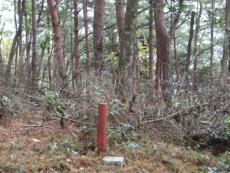 | 弥仙山山系西側:市境の三角点「孫谷:302.80m」と「見内:342.47m」に登頂 あやべ里山 散策 2003.11.16 四つ尾山の四季へ 大阪の「アルピ山と里の会」の御一行(31名)を於与岐町下村の公民館前に迎えた後、昨日、下見をすませた綾部市境の三角点:孫谷と見内に登るべく単独冒険?に入った。 錦秋の丹後峠、市境の手前に駐車、見内方面への林道入り口に車があったので、狩猟解禁日のこともあり警笛を鳴らす。登山準備中に戻ってこられたので話をする。 市境まで歩き山に入る。檜植林の急斜面を上り詰めると「大切にしよう三角点」の標柱のわきに三角点標石が埋まっていた。 於与岐八幡宮横から田和峠を越えて見内に入る、大回りするよりも近い。昨日、下見で脱輪して助けていただき於与岐の人の親切に大感謝した林道に入り堰堤に駐車。 孫谷方面に抜ける峠への山道を登る。谷沿いは、湿地状の雑木林だったが、やがて松林に変わると気持ちの良い尾根道を歩く。昨日まで入山禁止の松茸山もありそう。 峠手前に竹林の伐採現場あり、どの山が最高点なのか見回しながら西への側尾根を上がる。最高点と思われる地点を探すと、松林の中に赤い境界柱と並んで三角点が見つかった。 天皇神社と滝不動を撮影、於与岐に戻り、改心の道大又林道終点に上がり、アルピ山と里の会の皆様が全員元気で弥仙山回遊をすませ下山されるのを出迎えた。 |