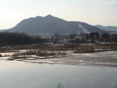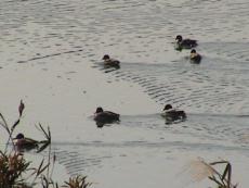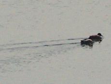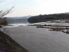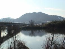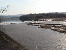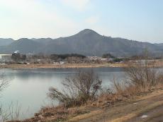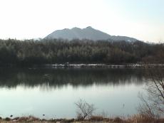 | 位田橋と四つ尾山 | 位田橋から観察 | この点が全て水鳥 | 思い思いに浮かんでいる | 夫婦カップル・デ−ト中 |