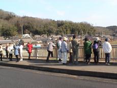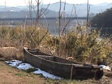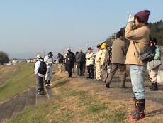 | 広々とした流域 | 陸鳥もいる | 小舟がひっそりと | 川面にも薄氷が張っている | 観察の人で賑わう |