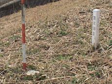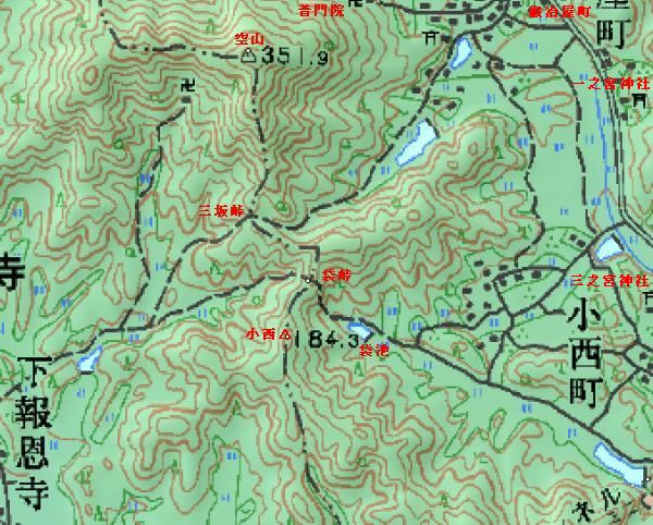 入手した地図つきのGPSの本番初使用を兼ねて、市境の三角点△小西に登った。小畑街道を舞鶴高速道路に沿う「押し谷」に入ると、茶畑が段をなす「下の池」があり堤防に△鴨垣があった。 さらに谷を詰めると「袋池」があり、潜んでいた鴨やなべ鶴?が多数バタバタと次々に飛び立っていった。樹林に入るとGPSは信号ロス状態となり、全く頼りにならない。 「袋峠」経由で稜線に出るル−ト・ナビを設定していたが、山道通りに行くと、ウェイポイントの袋峠をとばした稜線に上がってしまっていた。 福知山の報恩寺へ抜ける袋峠だが、天々宇知栗さまのHPでは、空山への縦走路もありいずれ行ってみようと思う。 稜線ではGPSが動き、△小西は少し行き過ぎてから、距離が開くので戻り見つけた。 これで綾部を取り巻く市境の山々の南側:−鉢伏山−△奥山−由良川−△三郡山−△蛇ケ谷−△中ノ谷−質山峠−△上殿−△長宮−長宮峠−木ノ芽峠−△高嶽−由良川−△小西−△空山−の内、三和境の蛇ケ谷、中ノ谷の2点が未登で残った、 前に△須知山ル−トをトライし、凄い藪のため断念したが、今回高名な「やまあそ」様のご投稿で、MTB(自転車)で3回に分け、立木−△三郡山−△蛇ケ谷−△中ノ谷−△須知山−野田を踏破されたHPのご紹介を頂いたので、これを参考に和木から残りの2点踏破をトライしてみようと準備中である。かなりの難コ−スの由、GPSがうまく働けば良いのだが・・。 |