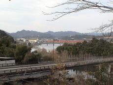 | 府道側 野田の最初の地蔵 | JR京都線横断禁止 | 由良川に懸かるブリッジ橋を仰ぐ | お地蔵さんが並ぶ |