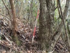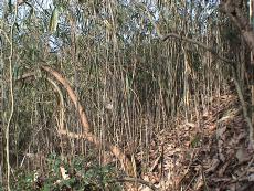 | 須知山:井根山分岐から | 最後の地蔵から山道 | 平地際に鳥獣保護区標識 | 笹と茨と蔦を掻き分けて |