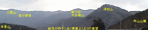 環綾部市境アルプスと言いますか低山ですが、ぐるっと綾部市を取り巻く山々に登っています。市境南側の−鉢伏山−△奥山−由良川−△三郡山−△蛇ケ谷−△中ノ谷−質山峠−△上殿−△長宮−長宮峠−木の芽峠−△高嶽−由良川−△小西−△空山−のうち、蛇ケ谷、中ノ谷の2点だけが未登です。点の記では三和町からというのを綾部側から登る計画で、須知山ル−トに挑戦しましたが、藪が余りにもひどく△須知山で断念しました。 今回貴殿がMTBでこのル−トを踏破されたHPをご紹介いただき、大変な難路であった由、素晴らしいことをされたと賞賛いたします。 この2つのHP(上原−△三郡山−△蛇ケ谷−大谷柴山−和木/和木−見峯山−△中ノ谷−△須知山−野田)を参考にさせていただき、和木−稜線を東へ−△蛇ケ谷−引き返し稜線を西へ−△中ノ谷−引き返し稜線途中の峠−和木をトライする予定で目下準備中です。 |