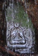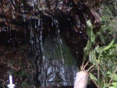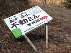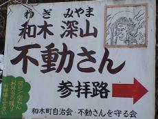 | 林道の案内 | ここから残雪の山道 | 深山不動縁由書 | 滝壺の中の不動明王 |