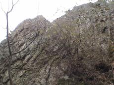 | 大岩がそびえ立つ | 大岩の踏み跡をよじ登る | 見峯山行者堂 | 展望:左(綾部市街) |