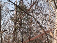 3/16(火)やまあそ様から「凄い藪コ−ス」との指摘あり、先に下山中に渓流の写真を撮った木橋を渡り、下から回り込む西からの登頂コ−スを準備したが、この迂回コ−スはなかった。桐差への峠に着き、山際を辿るが、いやでも雑木の密生藪を試行錯誤で登行するはめになり、きつく疲れる。 赤いペンキの塗られた立木の山道に出て一息つく、この山道もコ−スから離れ、また藪こぎ、頂上手前の白い岩石群に出て、間もなく頂上△中ノ谷に到着。早速三角点標石、点名:中ノ谷をカメラにゲット。 下山は、この藪コ−ス往復に気乗りせず、登山用に用意したコ−スで無理矢理に林間を下りる。地図に破線の山道はなく、谷に下りかけては斜行する繰り返しで、立木に赤いペンキの山道に出る。ここにも和木深山1番地:松茸環境整備の立て札あり。 下山コ−スから離れるので、再び林間に入り下ると林道へ出た。駐車した広場から100m下の横谷で、竹藪整備に地元女性2人が車で到着された所だった。 |