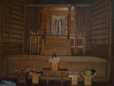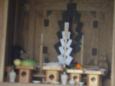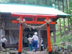 | 水分神社(登山口) | 於成神社跡にある地蔵 | 鳥居と屋根新調の於成神社 | 於成神社内陣(中腹) |