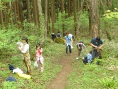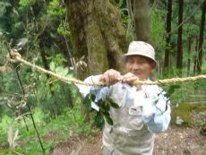 | 昨日の青葉山登山など3連日登山。登山口で里の売店設営中、山菜おにぎりを求める。HP弥仙山の四季制作者の吉崎さまに電話をかけると出られた由。登山口の水分神社に参拝、手袋を貰う。中腹の於成神社で準備中の吉田さまに追いつく。大岩神さまのお供えを取材。御幣とお餅を供え、注連縄にもシキミと御幣を飾られる。 展望のお地蔵さんにもお供えと注連縄。頂上の金峰山神社に到着。すでに大勢が上がっておられた。 買ってきた弥仙山こしひかりの山菜おにぎりをぱくつく。うまい。神社の戸が外され幕が張られ、祭礼の準備が整えられていく。吉崎さまがビデオ撮りされていた。去年の蓮ケ峰縦走の記録編集中との話を交わす。 一足先に降りることにし下山にかかる。吉崎さまが、弥仙山・蓮ケ峰の友好女性集団を連れて上がってこられるのに出合う。大体知っている顔ぶれだ。家族連れも三々五々続々と登ってくる。少し降りると滝花前区長様が立木に登り、家族連れで巣箱を架けておられた。木に横木をくくりつけ、高見に登られている。器用なものだと感心。子供さんに鳥は北向きに穴をあけるので、北向きに巣箱を取り付けると云っておられる。見るとなるほど北向きに立木に穴が開けられている。下山途中で吉崎老人に出合う。この辺にヤマシャクヤクが咲くが見あたらないと云われる。探しながら降りる。あった!昨日の青葉山に続いて連日の山の秘宝にご対面。於成神社の御利益か、捜し物が良く見つかるようだ。下山すると里の売店も大賑わいだった。 |